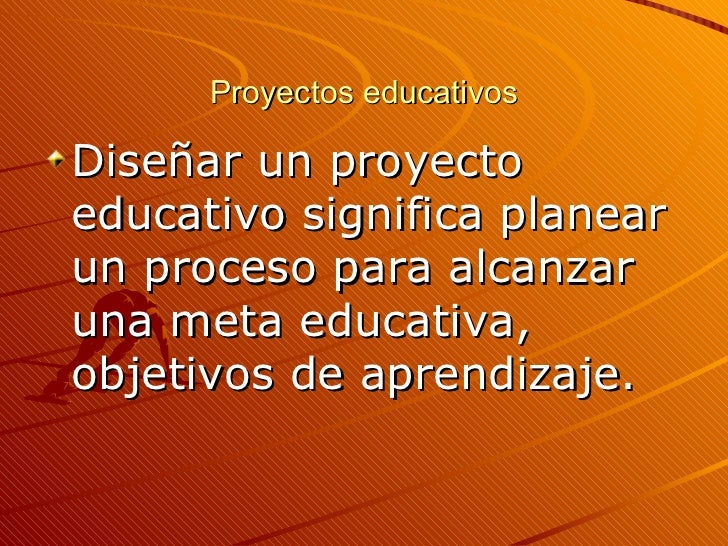 - 3. Proyectos educativos <ul><li>Diseñar un proyecto educativo significa planear un proceso para alcanzar una meta educativa, objetivos de aprendizaje. </li></ul>